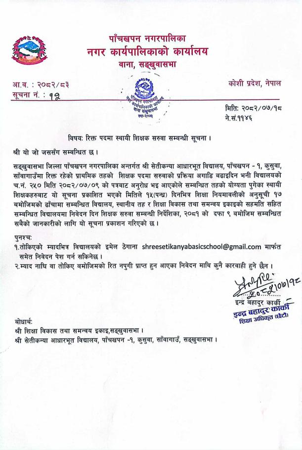 रिक्त पदमा स्थायी शिक्षक सरुवा सम्बन्धी सूचना ।