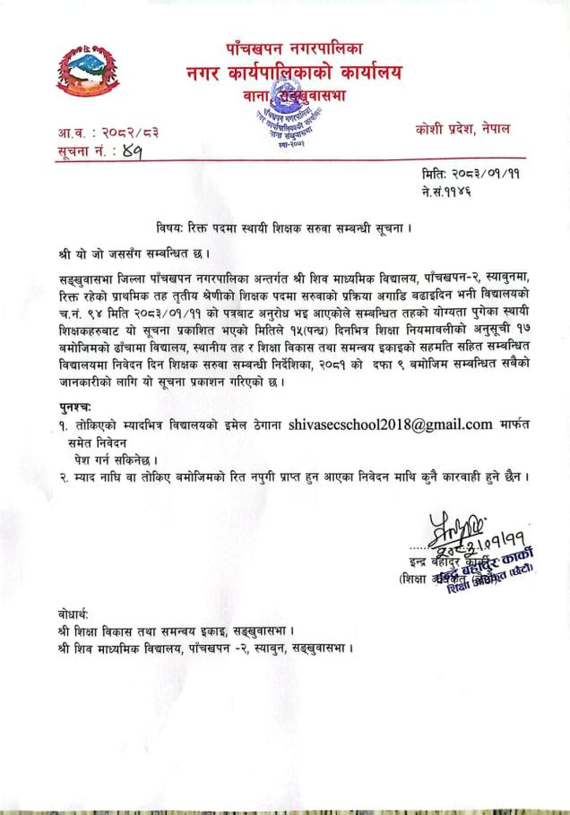 रिक्त पदमा स्थायी शिक्षक सरुवा सम्बन्धी सूचना ।