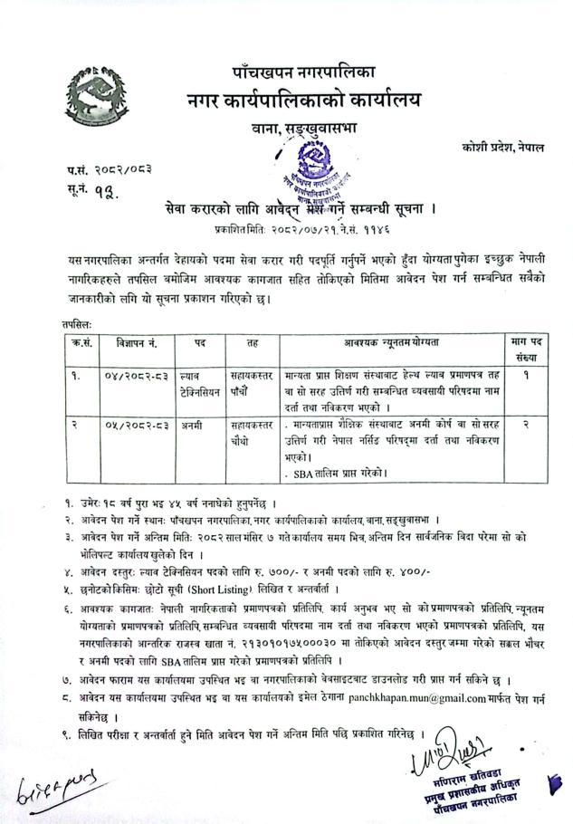 सेवा करारमा पदपूर्ती गर्ने सम्बन्धी सूचना ।
