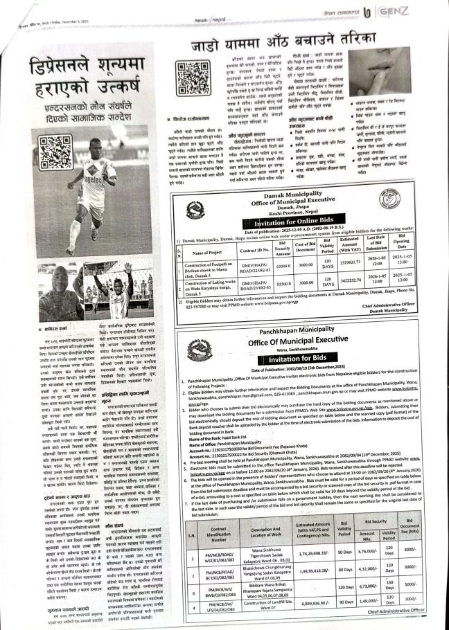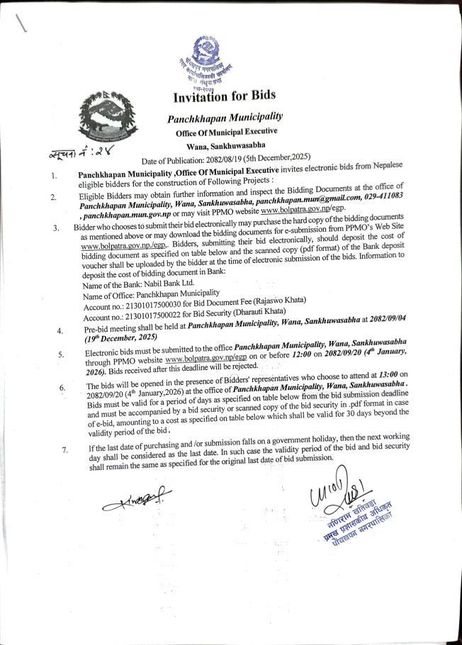 सार्वजनिक खरिद/बोलपत्र सूचना