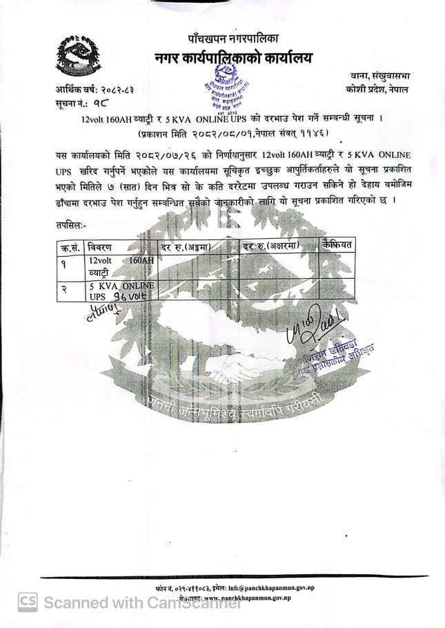 दरभाउ पेश गर्ने सम्बन्धी सूचना ।
