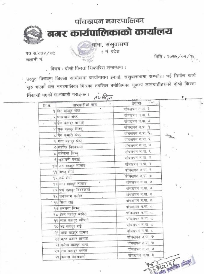 भुकम्प पिडित सेवाग्राहीहरूलार्इ दाेस्राे किस्ता निकासा सम्बन्धि सुचना