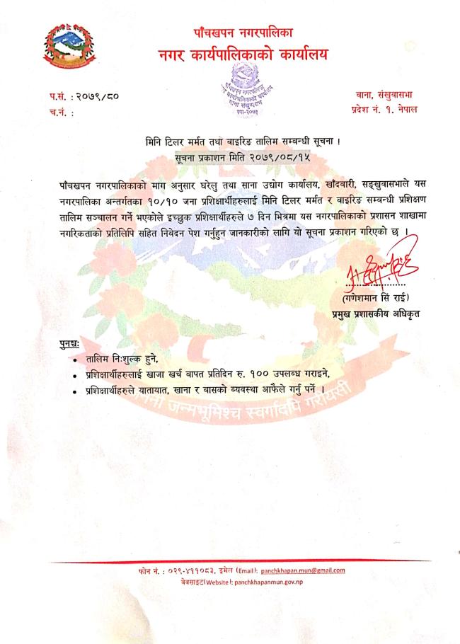 मिनि टिलर मर्मत तथा वाइरिङ सम्बन्धी सूचना ।